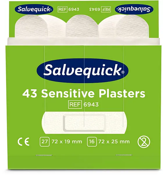 Prémium minőségű Salvequick Sensitive sebtapasz utántöltő készlet, kifejezetten érzékeny bőrre kifejlesztve. Bőrgyógyászatilag tesztelt. Könnyedén egy kézzel felhelyezhetőek, rugalmasak és kényelmesen használhatók. 43 db sebtapasz (27x 72 x 19 mm és 16x 72 x 25 mm). Eltarthatóság: 5 év.