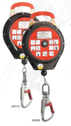 Cado-C15 visszahúzható zuhanásgátló, 15m acélkábel, fém ház, karabiner Cikkszám: ACR-115 - a munkavégző mozgásának megfelelően a zuhanásgátló rugós tartódobja automatikusan le- illetve feltekerve a kötélzetet, állandóan feszesen tartja azt - 135 kg maximális terhelés, rövid fékezőtávolság, legfeljebb 6 kN fékezőerő - acél felfüggesztési pont és alsó gyűrű, visszacsapódást gátló műanyag gömb - könnyen kezelhető alumínium-acél karabiner dupla rugós biztonsági zárral (220g)