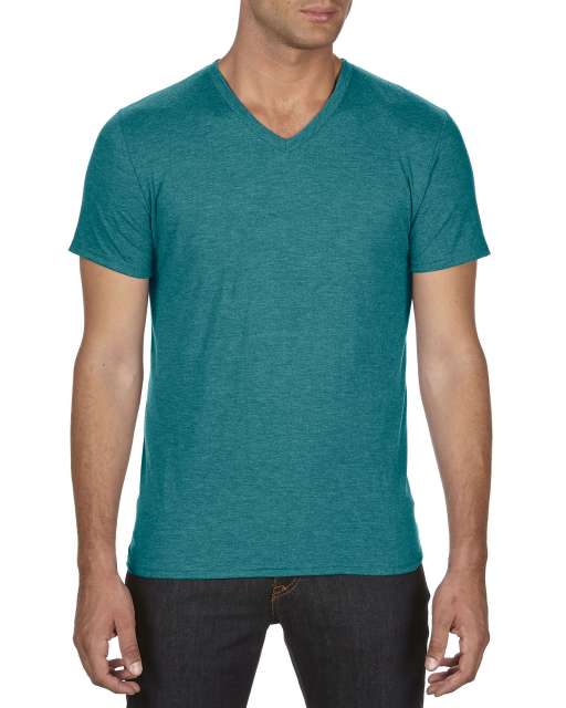 ANVIL (AN6752) nyári rövid ujjú férfi póló fésült pamut/poliészter pamut V nyakú oldalvarrott, Hanga sötétkék/Heather Galapagos Blue színben, méret: XXL