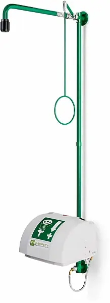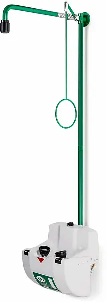 A biztonsági zuhanykombinációk a vészhelyzeti testzuhanyok és a szemzuhanyok kombinációi több helyet takarítanak meg, mint az egyedi telepítés. Ez lehetővé teszi egy központi hozzáférési pont létrehozását elsősegélynyújtáshoz. A lehetséges kombinációnak köszönhetően a kézi szemzuhannyal egy sérült a kisebb sérülések részleges ellátását a vészhelyzeti testzuhany használata nélkül is elvégezheti. Nagy teljesítményű zuhanyfej a visszafogott, egyenletes és lágy vízsugárért a vegyszerek szemből történő kiöblítésére optimalizálva. A robusztus kialakítás alkalmas a mindennapi nehézipari használatra is. Tökéletes beállítást biztosít a vészhelyzeti testzuhany a helyszíni veszélyes helyzetekhez igazodva a percenként 50 és 110 liter közötti választható térfogatáramnak köszönhetően. Önleeresztő, nagymértékben vízkőmentes és karbantartásmentes, valamint nagyon tartós és korrózióálló. Az állítható vészhelyzeti testzuhanyok a helyszíni körülményekhez igazodnak. Vegyszerálló poliészter porbevonat az agresszív környezetben való használatra. Vízbemenet: 3/4-es hüvelyes. Testzuhany áramlási sebessége: 75 l/perc | 20 GPM. Szemzuhany áramlási sebessége: 14 l/perc.