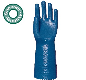 Érdesített PVC védőkesztyű, 34 cm-es, kék, sav-, lúg-, olajálló 3768-70-es