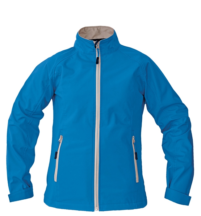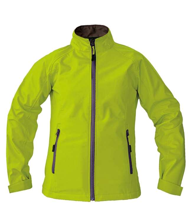 Női softshell dzseki, kontrasztos cipzárral. Könnyű, dupla rétegű softshell alapanyagból. Tépőzárral és állítható mandzsettákkal.